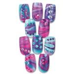 Kreativní sada na výrobu a ozdobu nehtů. Sada obsahuje 3 laky na nehty, různé ozdobné kamínky, 30 plastových nehtů, 30 oboustranných samolepek, plastovou misku s nástroji a barevný návod.